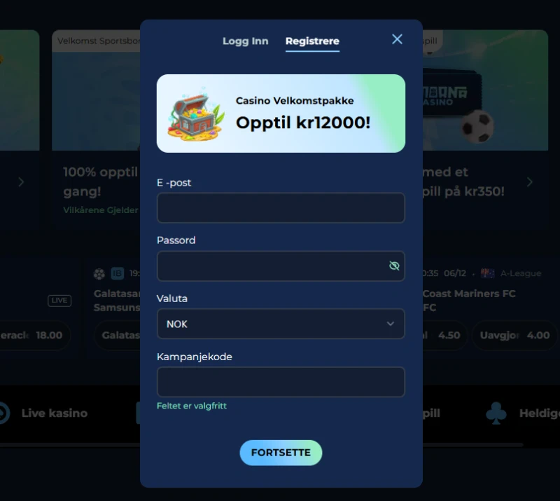 Start ved å klikke på “Registrer”-knappen på vår hjemmeside. Du fyller inn nødvendige detaljer som e-post og et sikkert passord, og velger ønsket valuta. Norske spillere kan velge NOK, noe som gjør budsjettstyring og bonusberegning enklere.