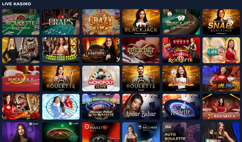 Crazy Time, Monopoly Live, Mega Ball, Craps Live |